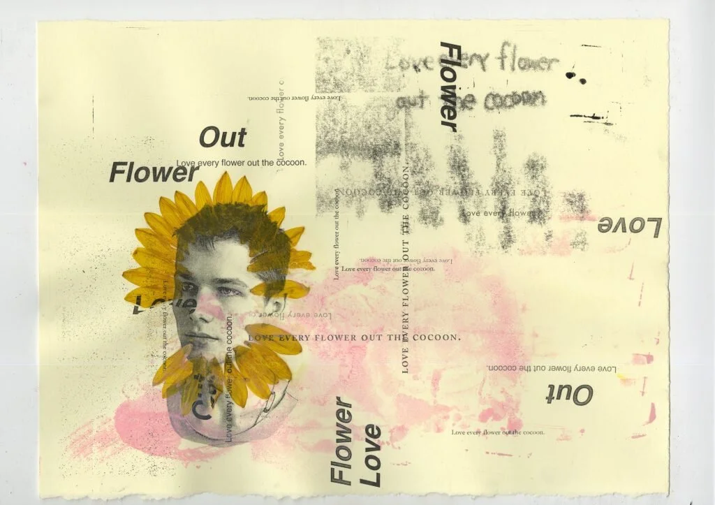 According to Gruber, Tyler The Creator’s album “Flower Boy” was influential to his final printmaking project. Gruber used, “a bunch of different text from a song that was really inspirational in [his] darkest moments, that says ‘love every flower out the cocoon.’ ”